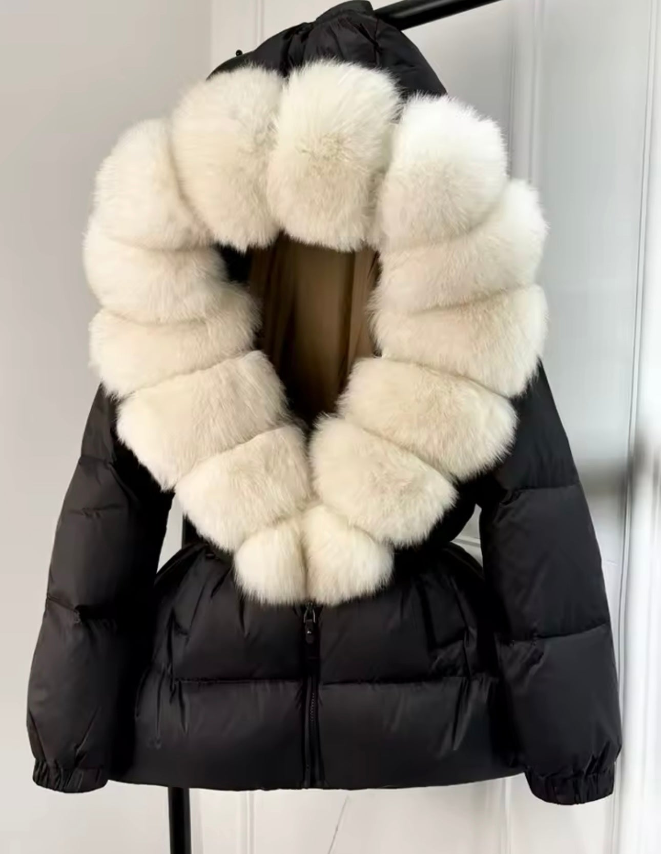 Black & cream fur coat